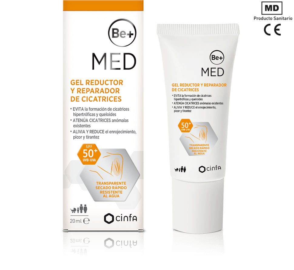 Be+ MED Gel Reductor y Reparador de Cicatrices repara y atenúa las cicatrices antiguas y recientes. Utilizar tras la curación de la herida y la restauración de la epidermis.