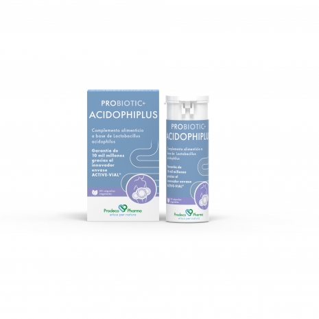 PROBIOTIC+ ACIDOPHIPLUS garantiza, durante todo el período de vida útil del producto, la aportación de 10 mil millones de células por cápsula, gracias al uso del envase ACTIV-VIAL® que, a través del innovador sistema de barrera con elevada acción desecante, permite una óptima conservación en el tiempo.