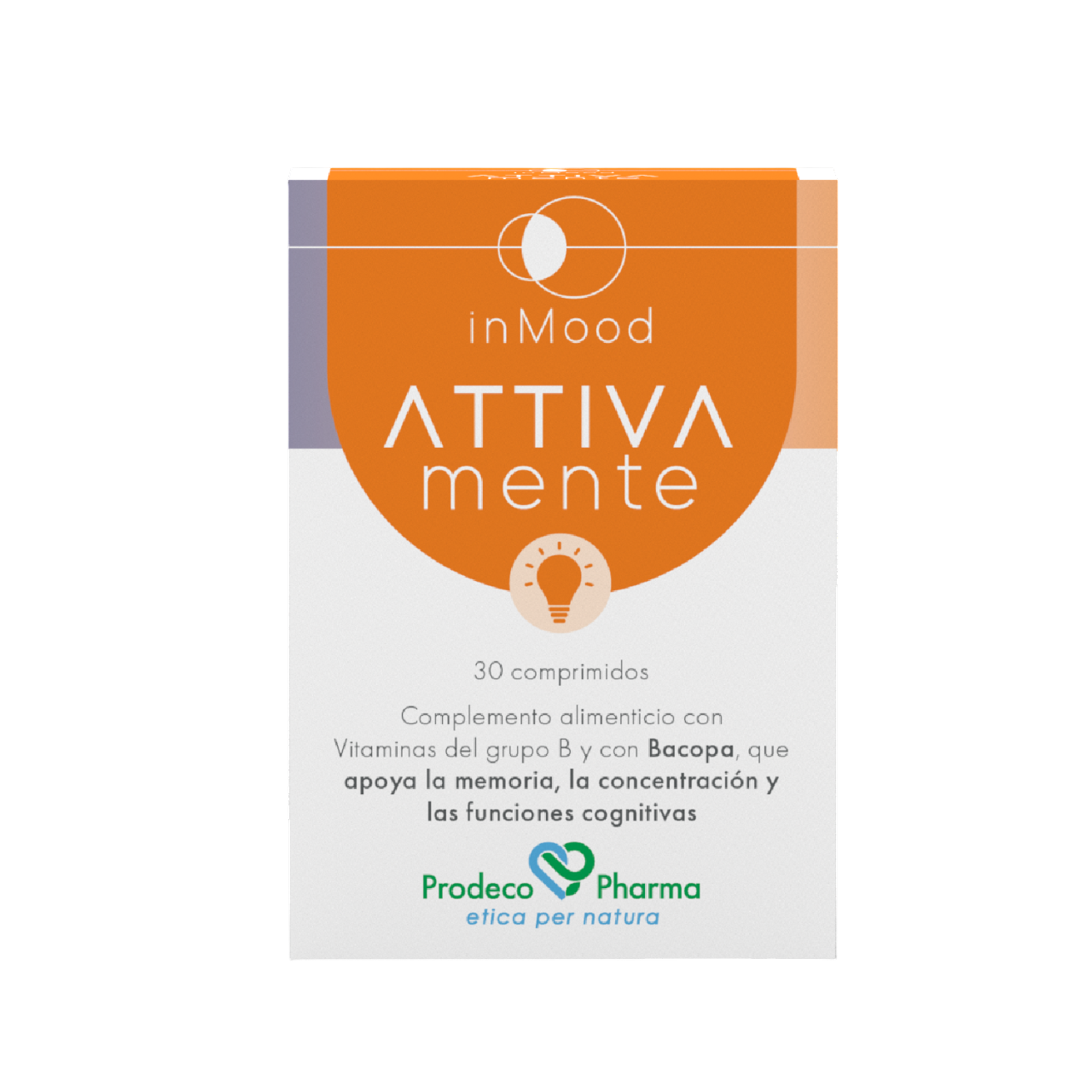 inMood ATTIVAmente es un complemento alimenticio en comprimidos bicapa de liberación controlada a base de Aronia, Mango y Vitaminas del grupo B procedentes del trigo sarraceno para apoyar el funcionamiento normal del sistema nervioso (B1, B2, B6, B12), en sinergia con la Colina y la Bacopa, para apoyar la memoria y las funciones cognitivas.