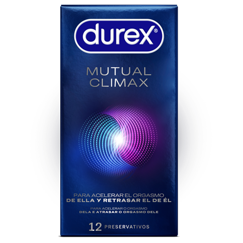 Preservativos Durex Mutual Climax con puntos y estrías para acelerar el orgasmo de ella y con lubricante reforzado para que él aguante más.